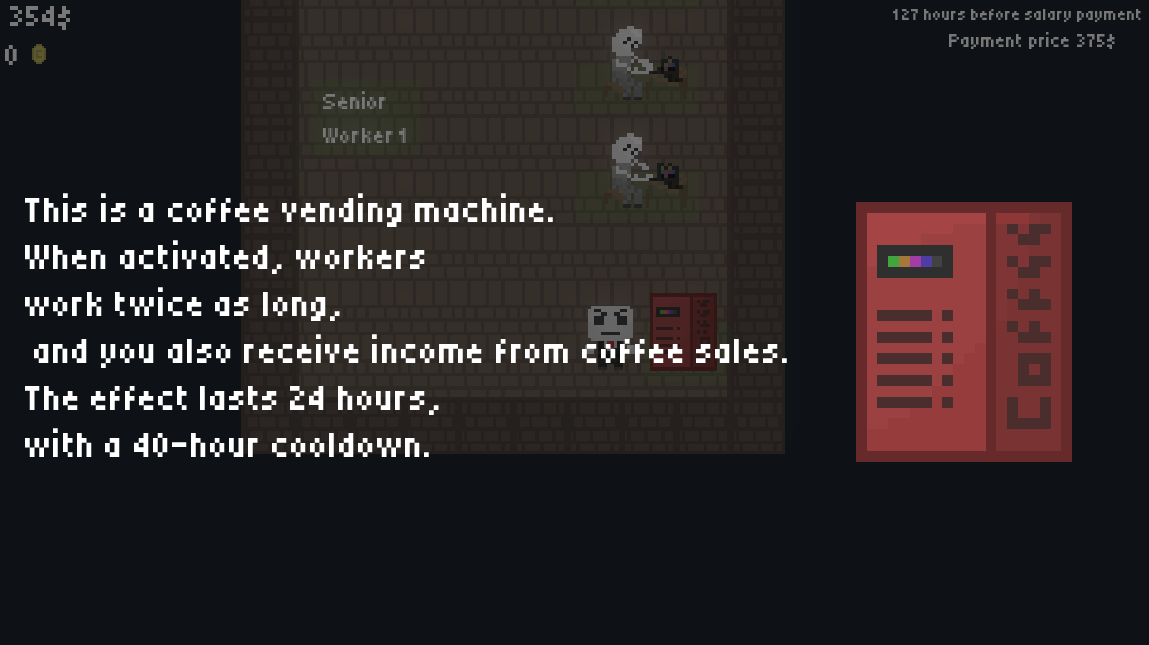 A payment will be made every 336 hours. This includes employee salaries, coffee machine maintenance, etc.